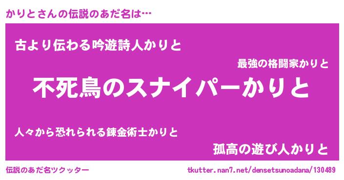 | ヒーロー風カッコイイあだ名 | 『仮面カリダー』『サイバー戦士カリト』 |