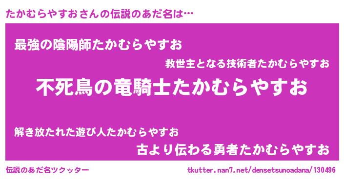 | ヒーロー風カッコイイあだ名 | 『スーパータカムラヤスオ』 |