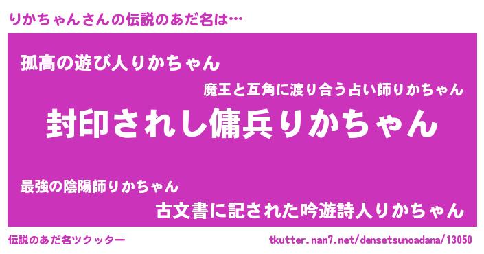 | ヘコむあだ名 | 『りかもー』『りかっ子』『レバニラ』 |