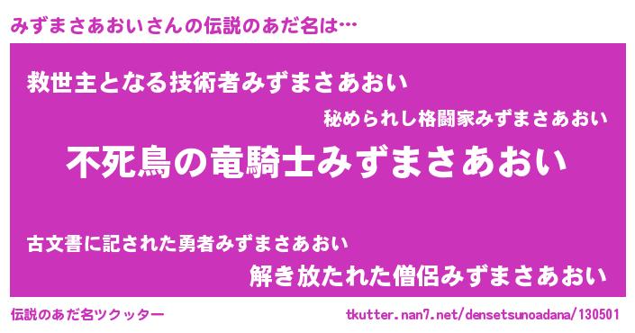 | 女子向けラノベタイトル風あだ名 | 『みずまさあおいアンティーク』 |