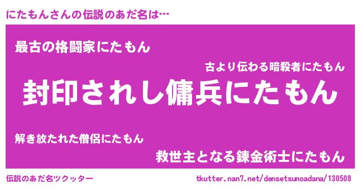 | 男性向けラノベタイトル風あだ名 | 『この素晴らしい世界ににたもんを!』 |