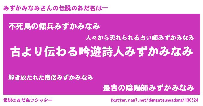 | 意味不明あだ名 | 『永久保存みずかみなみ』 |
