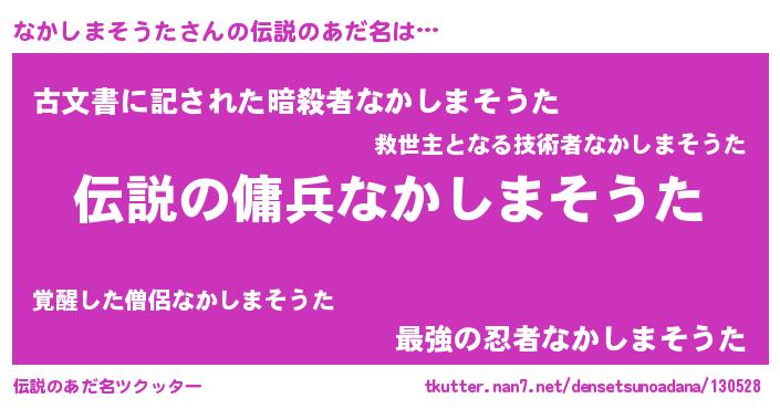 | ヒーロー風カッコイイあだ名 | 『スーパーナカシマソウタ』 |