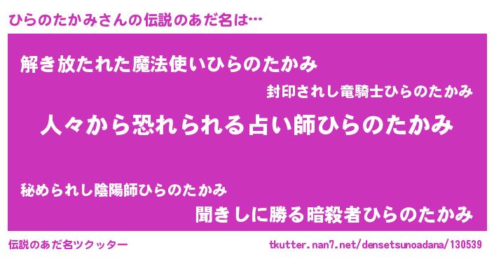 | ヒーロー風カッコイイあだ名 | 『正義の使者ひらのたかみ』 |