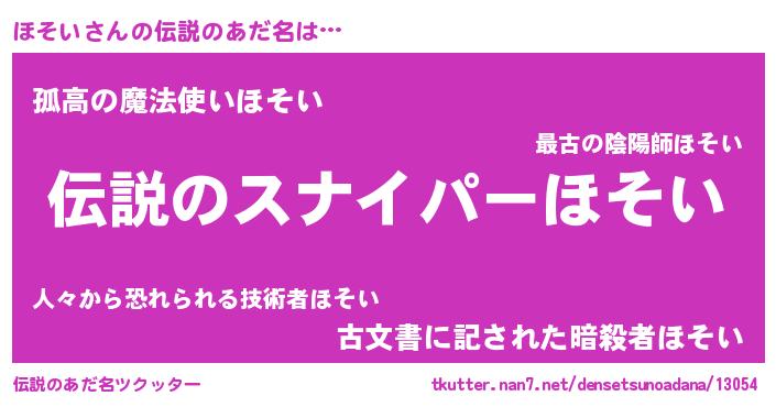 | ファンタジー風あだ名 | 『ゼホソトゥ』『ホソフェル』 |