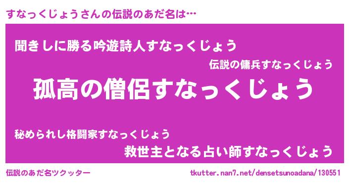 | ヒーロー風カッコイイあだ名 | 『魔戒騎士スナ』『仮面スナダー』 |