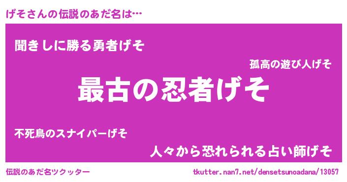| ファンタジー風あだ名 | 『カークゲソラー』『エターナルゲソー』 |