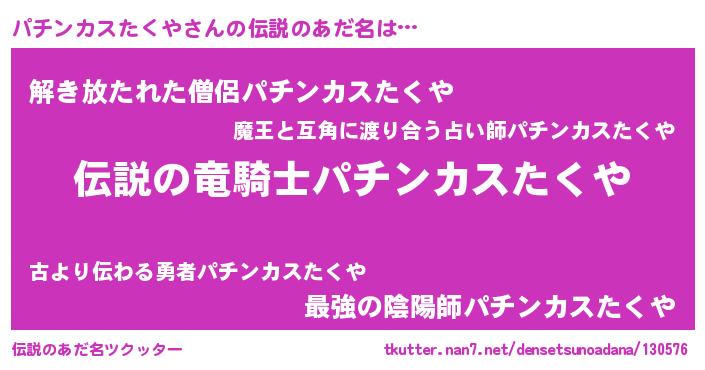 | ヒーロー風カッコイイあだ名 | 『スーパーパチンカスタクヤ』 |