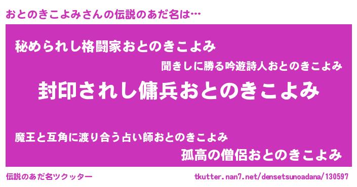 | ヒーロー風カッコイイあだ名 | 『仮面オトダー』『魔戒騎士オト』 |