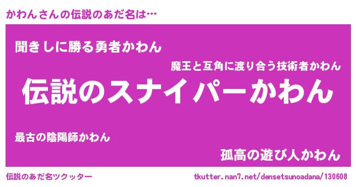 | 胡散臭い通販商品みたいなあだ名 | 『必ず成功する霊験あらたかなお札…その名も「かわん」』 |