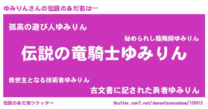 | 胡散臭い通販商品みたいなあだ名 | 『必ず成功するブレスレット…その名も「ゆみりん」』 |