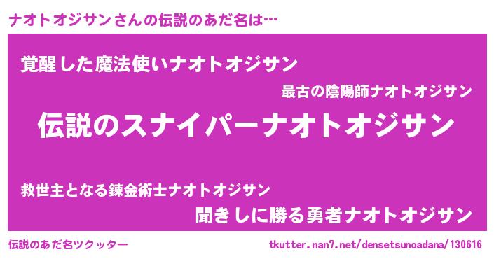 | 男性向けラノベタイトル風あだ名 | 『ナオトオジサンスレイヤー』 |