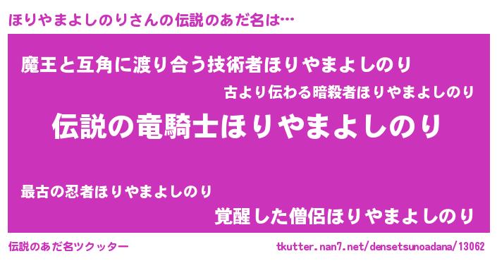 | ヒーロー風カッコイイあだ名 | 『スーパーホリヤマヨシノリ』 |