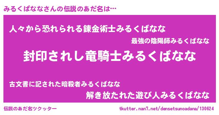 | 欧米人風あだ名 | 『みるくばなな・ステッグマイヤー』 |