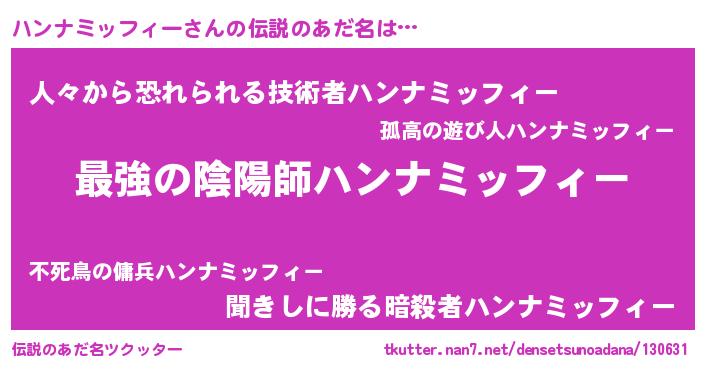 | 欧米人風あだ名 | 『ハンナミッフィークリステル』 |