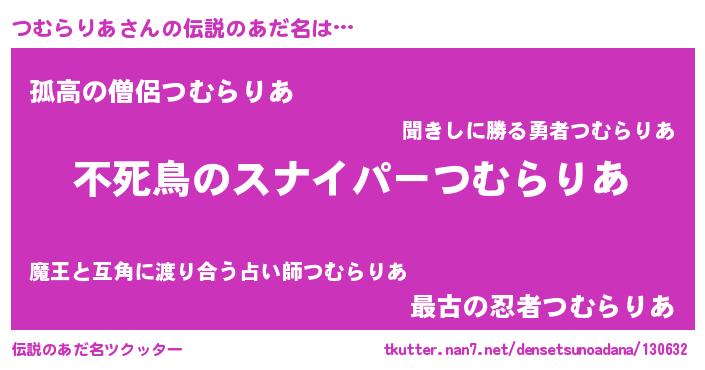 | 意味不明あだ名 | 『住所不定無職つむらりあ(89歳)』 |