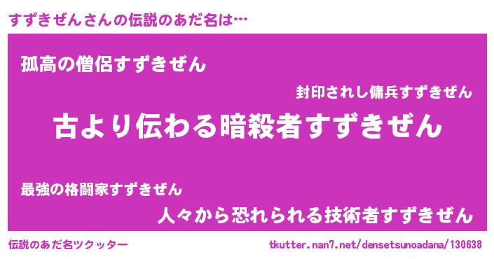 | ポケモン風あだ名 | 『スズセウス』『ゼニスズ』 |