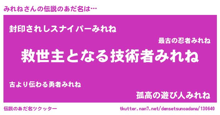 | 肩書あだ名 | 『みれね助教授』『みれね御曹司』 |
