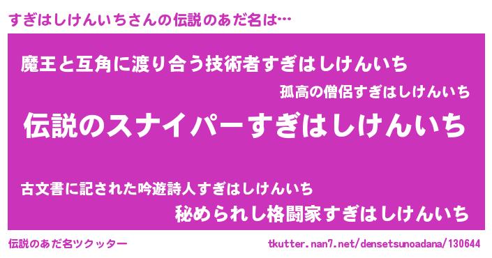 | ヒーロー風カッコイイあだ名 | 『スーパースギハシケンイチ』 |