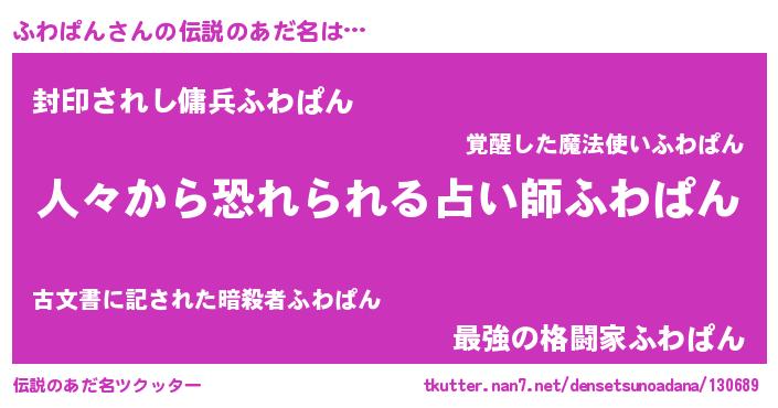 | ヒーロー風カッコイイあだ名 | 『友情の使者ふわぱん』『仮面フワダー』 |