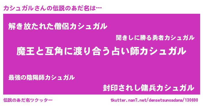 | ヒーロー風カッコイイあだ名 | 『仮面カシダー』『愛の使者カシュガル』 |