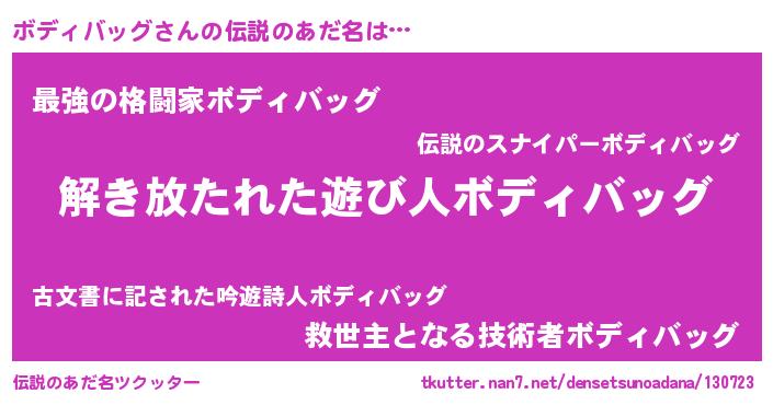 | ポケモン風あだ名 | 『ヒボディバッグ』『ボデセウス』 |