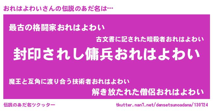 | ヒーロー風カッコイイあだ名 | 『スーパーオレハヨワイ』『暗黒騎士オレ』 |