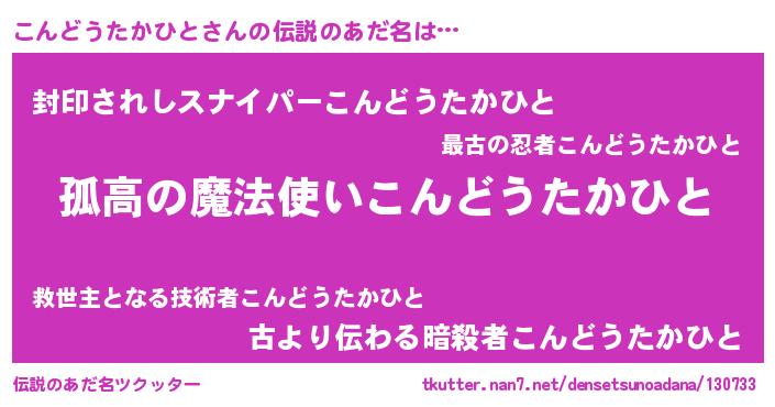 | 意味不明あだ名 | 『とにかく怪しいこんどうたかひと』 |