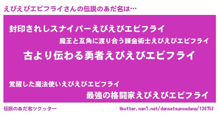 | 意味不明あだ名 | 『永久保存えびえびエビフライ』 |