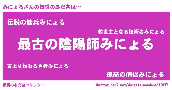 意味不明あだ名 なめこ科みにょる属』『自称みにょる