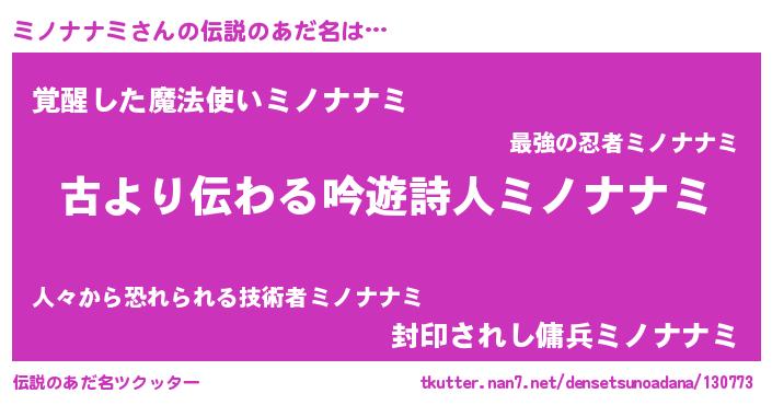 | ヒーロー風カッコイイあだ名 | 『ネオミノナナミ』『幻影騎士ミノ』 |