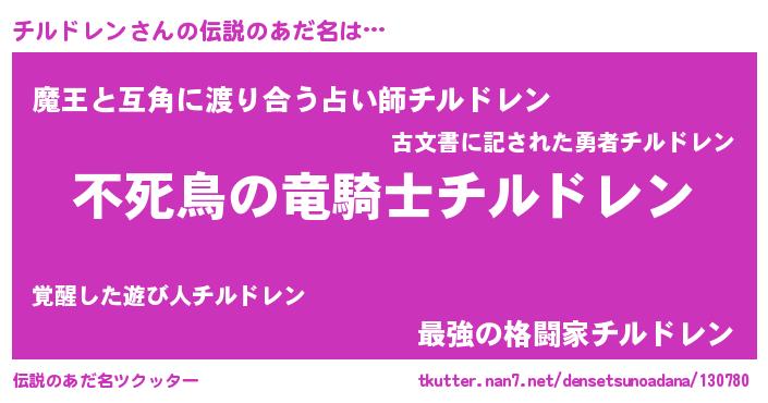 | 女子向けラノベタイトル風あだ名 | 『チルドレン姫と円卓の騎士』 |