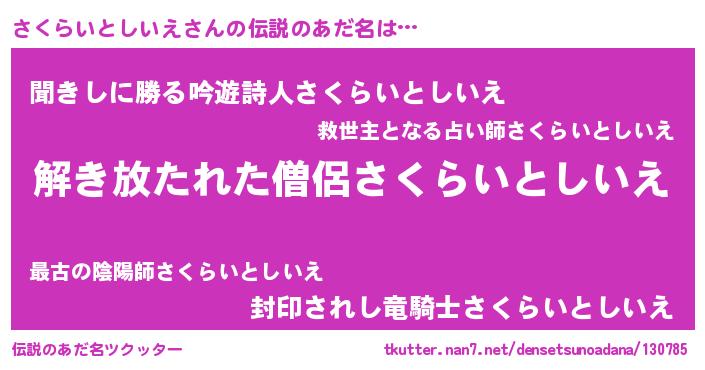 | 意味不明あだ名 | 『住所不定無職さくらいとしいえ(59歳)』 |