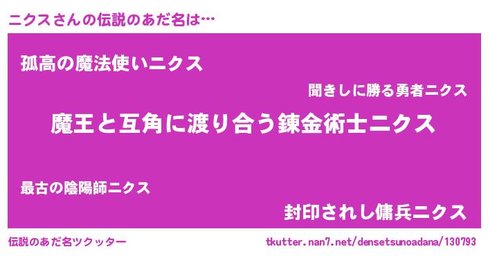 | ポケモン風あだ名 | 『ニックウザ』『ヒニクス』 |