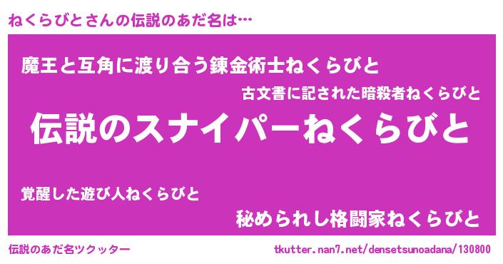 | 胡散臭い通販商品みたいなあだ名 | 『必ず成功する霊験あらたかなお札…その名も「ねくらびと」』 |
