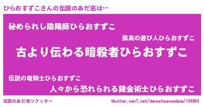 | 胡散臭い通販商品みたいなあだ名 | 『来世でも幸せになれる健康食品…その名も「ひらおすずこ」』 |