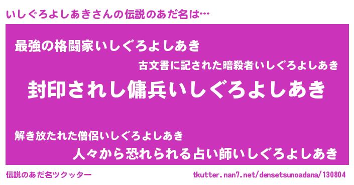 | 男性向けラノベタイトル風あだ名 | 『この素晴らしい世界にいしぐろよしあきを!』 |