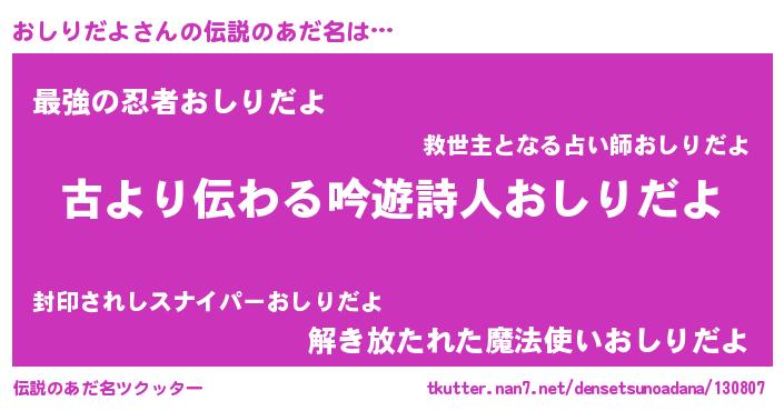 | ヒーロー風カッコイイあだ名 | 『仮面オシダー』『ネオオシリダヨ』 |