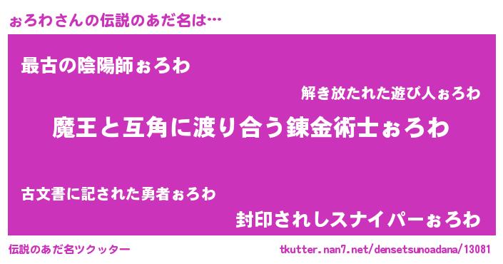 | ヒーロー風カッコイイあだ名 | 『愛の使者ぉろわ』『仮面ォロダー』 |