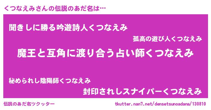 | ヘコむあだ名 | 『くつなえみ(笑)』『くつにー』 |