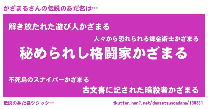 | ヒーロー風カッコイイあだ名 | 『ウルトラかざまるマン』『幻影騎士カザ』 |