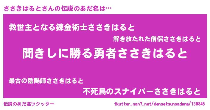 | 男性向けラノベタイトル風あだ名 | 『ささきはるとという概念が存在しない退屈な世界 』 |
