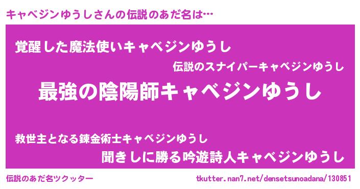 | 欧米人風あだ名 | 『トリンドルキャベジンゆうし』 |