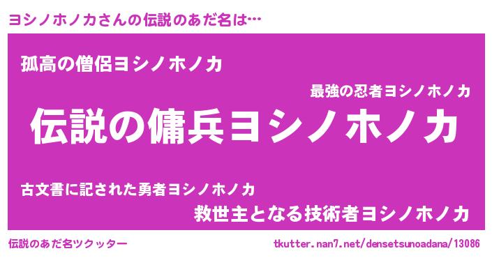 | ヒーロー風カッコイイあだ名 | 『スーパーヨシノホノカ』『暗黒騎士ヨシ』 |