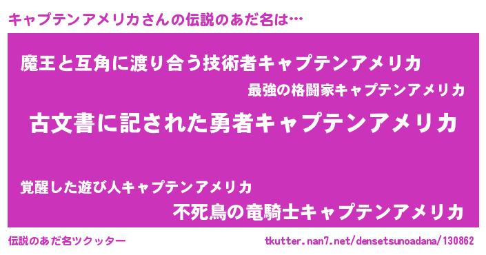 | 意味不明あだ名 | 『永久保存キャプテンアメリカ』 |