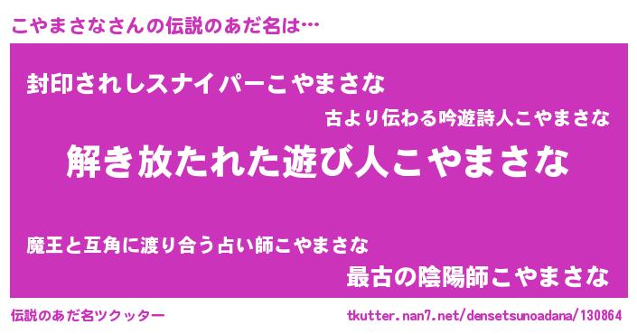 | ヒーロー風カッコイイあだ名 | 『銀牙騎士コヤ』『スーパーコヤマサナ』 |