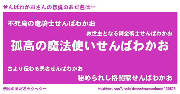 | 意味不明あだ名 | 『とにかく怪しいせんばわかお』 |