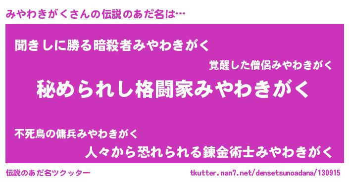 | 男性向けラノベタイトル風あだ名 | 『緋弾のミヤワキガク』 |