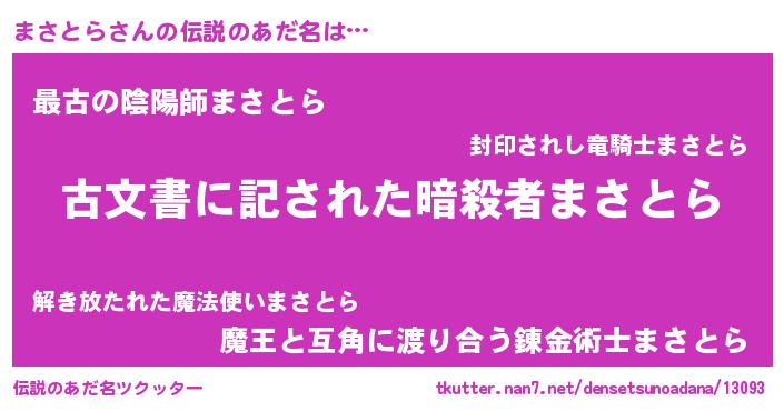 | ヒーロー風カッコイイあだ名 | 『ネオマサトラ』『ウルトラまさとらマン』 |