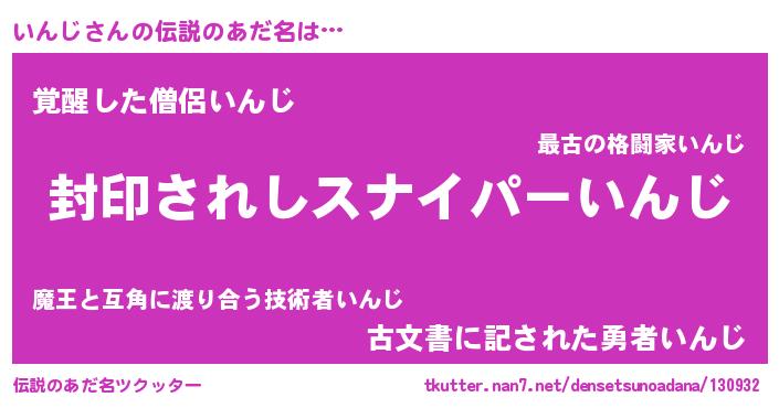 | 男性向けラノベタイトル風あだ名 | 『いんじに滅ぼされるだけの簡単なお仕事です』 |